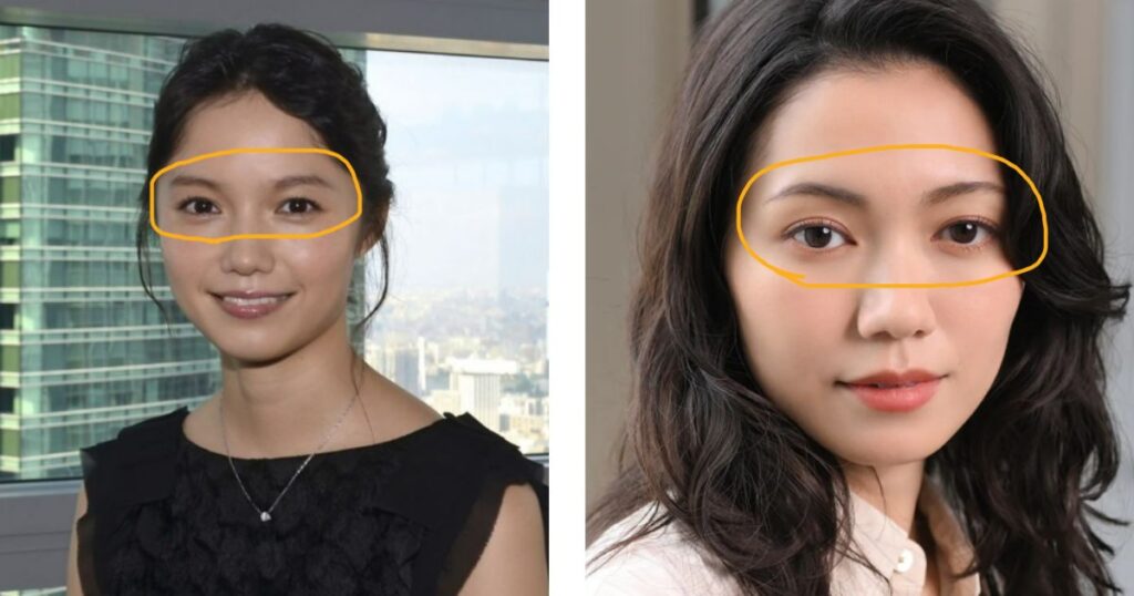 ちなみに、宮崎あおいさんのが10歳ほど上なので、2人とも30歳くらいの画像で比較しています。